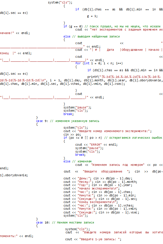 массиве по введенному времени их начала. Найдя записи программа отобразит их в
