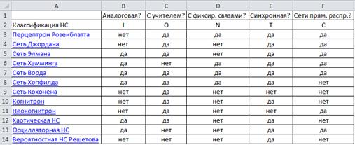 проектирование экспертной системы выбора нейронной сети. Составлена база