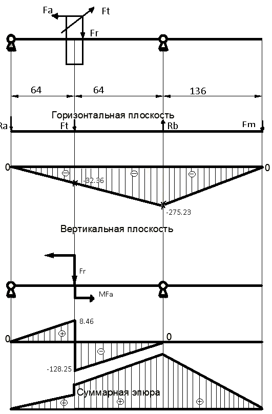 Определение опорных реакций. Построение эпюр изгибающих и крутящих моментов.