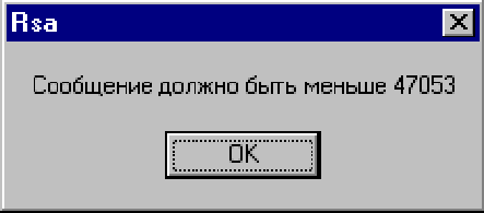 сообщения}:integer;:='16813'; {открытый ключ}:='47053'; {произведение p,