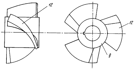 викидається через радіальні отвори в корпусі. При цьому відцентрова сила