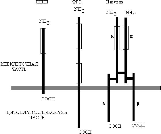 полоса), и внутриклеточный домен варьирующей длинны. Рецепторы ФРЭ и инсулина