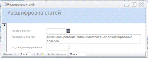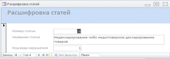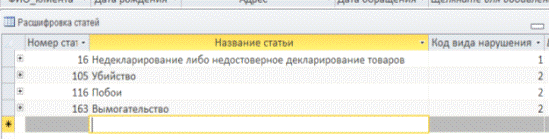 клиента]) INNER JOIN [Расшифровка статей] ON [Вид нарушений].[Код вида