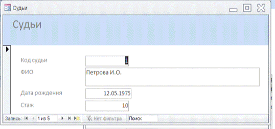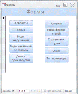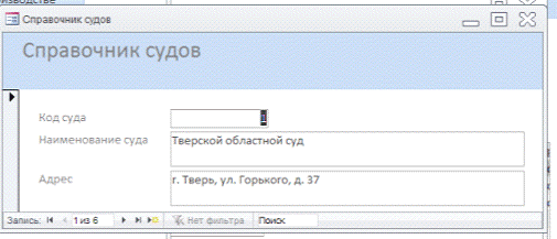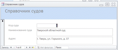 приговоров суда и текущих делах, рассматриваемых в суде. Разработанная база