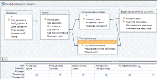 AS [Неэффективность защиты][Тип приговора] INNER JOIN (([Расшифровка статей]