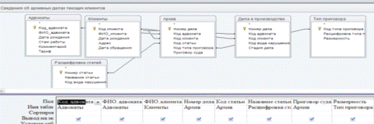INNER JOIN (Адвокаты INNER JOIN Архив ON Адвокаты.Код_адвоката = Архив.[Код