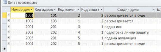 производстве].[Стадия дела], [Дела в производстве].[Номер дела], [Судебные