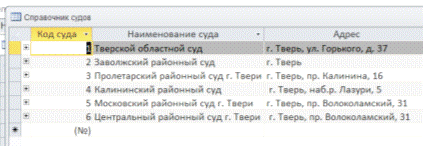 судов].[Код суда] = [Судебные заседания].[Код суда];