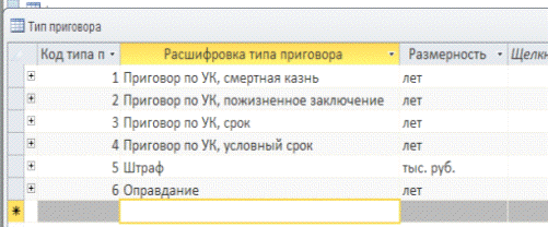 приговора].Размерность[Расшифровка статей] INNER JOIN ([Тип приговора] INNER