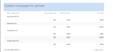 (подготов)]BY [Сумма гонорара по делам (подготов)].Код_адвоката, [Сумма