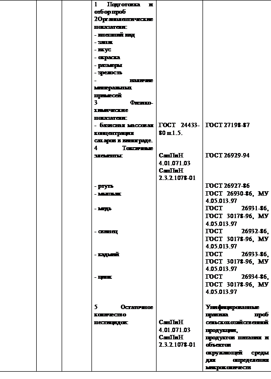 образцов, взятых у изготовителя Анализ состояния производства