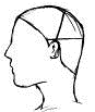 горизонтальный пробор от уха до уха через макушку, и горизонтальный пробор на