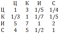 Пусть эксперты определили показатели некоторого
