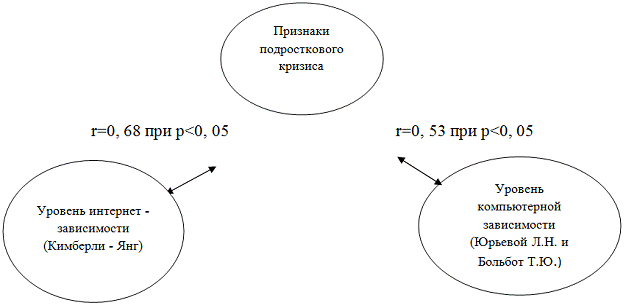 Анализ взаимосвязи степени выраженности компьютерной зависимости и кризиса подросткового возраста