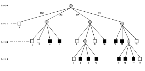иерархического уровня квадродерева, а меньшие квадранты появляются на более
