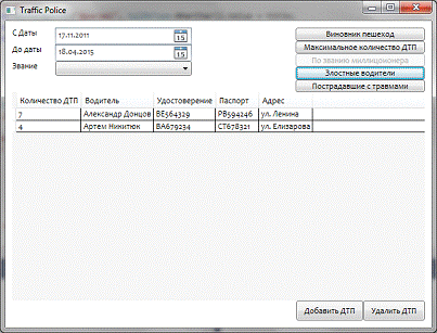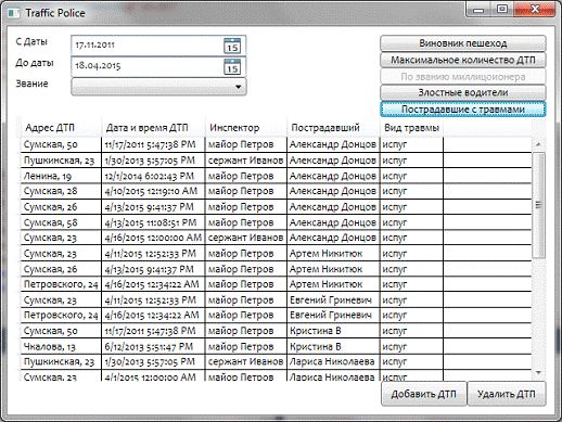 составить список пострадавших в ДТП указанный