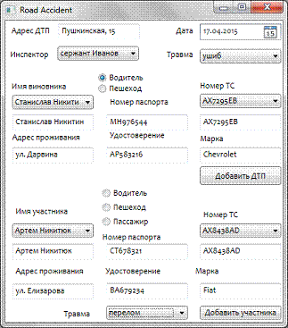 Рисунок 5.3 - Заполненное окно добавления ДТП