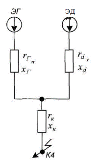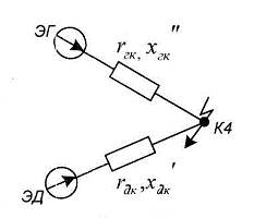 эквивалентного двигателя при к. з. на ГРЩ в точке К1: