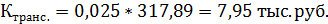 Р = 11 * 0,3 * 2,45 * 1296 = 10,48 тыс. руб.