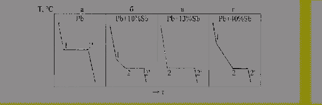 Рис. 1.1. Кривые охлаждения сплавов системы Pb -