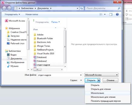 диалоговых окон и др., то следует открыть файл с расширением .accdb, являющийся файлом проекта.