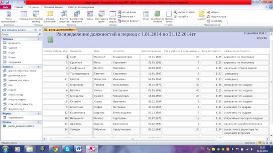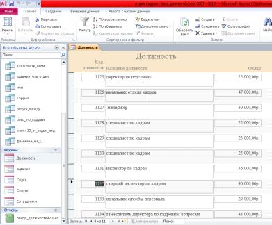 Отчет в данной курсовой работе представляет нам распределение должностей