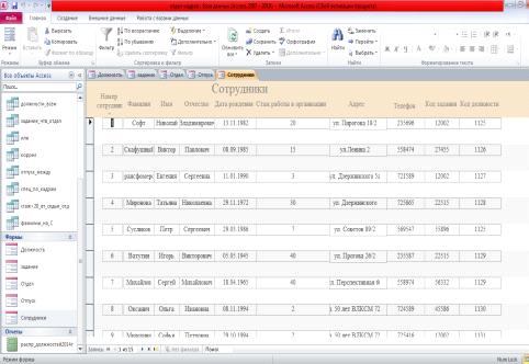 Рис. 10.6 - Форма по таблице «Сотрудники»