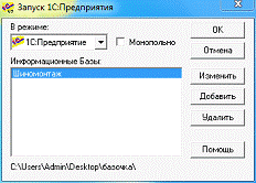 "1C: Предприятие", далее появиться окно запуска 1C, в котором