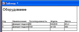 стоимость конкретной услуги. Справочник "Оборудование" содержит