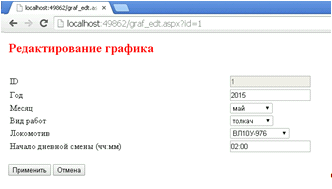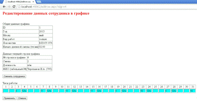 базы данных и web- интерфейса модуля по учёту графиков труда и отдыха