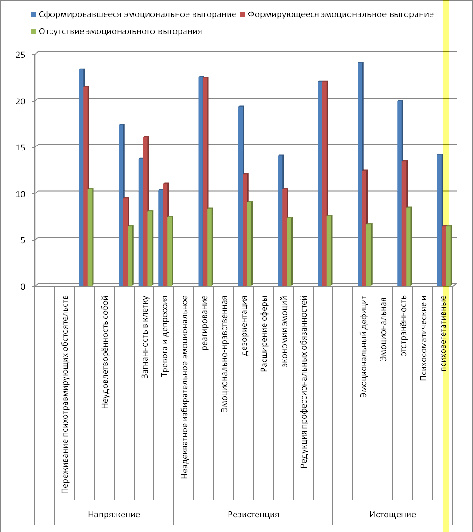 дезориентацию, расширение сферы экономии эмоций, редукцию профессиональных