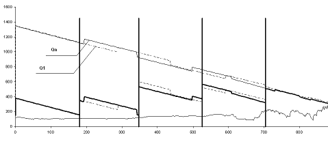 консервации, а перекачка ведется через лупинг. После 590,0 км перекачка снова
