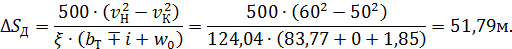 389 м, а при скорости 60 км/ч - 462 м. Для того же уклона при расчетном