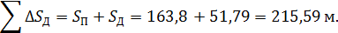 коэффициенте 34 тс/100 т получаем при скорости 50 км/ч путь 320 м, а при