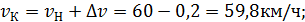 скорость в начале торможения 57 км/ч, расчетный тормозной коэффициент 34 тс/100