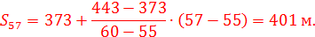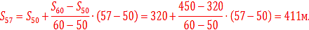 Для определения тормозных путей при скорости 57 км/ч воспользуемся