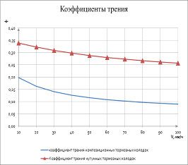 равны 55 и 60 км/ч. При этом расчетные тормозные коэффициенты составляют 33 и