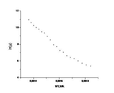 барьера перестроим зависимости ρ(Т) в координатах ln ρ от