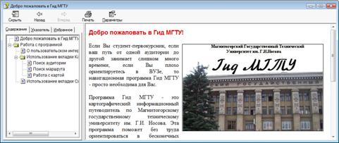 Применение электронного путеводителя для ГОУ ВПО «МГТУ им. Г.И. Носова»