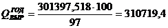 Gовмз =860 х (Qо + Qв) / (t1 - t2) = 860 х (22,44+3,9) /(150 - 70)=283,2т/ч.
