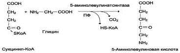 Глицин+сукцинил-КоА→5-аминолевулиновая
