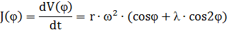 График ускорений поршня J(ц)