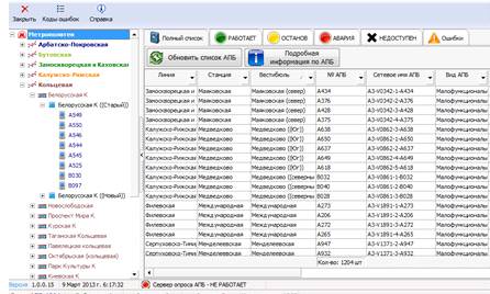 Рисунок 13. Окно приложения АРМ мониторинга