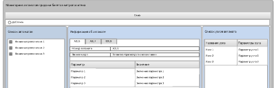 отображает рабочую область, состоящую из 3 частей: список автоматов