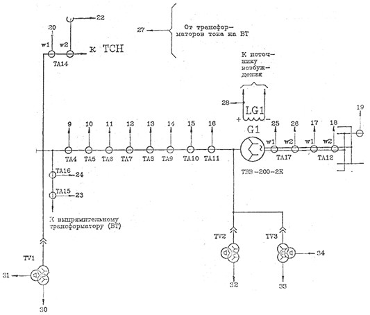 В качестве расчётного приняли цепь генератора ТВФ-63-2. Затем были