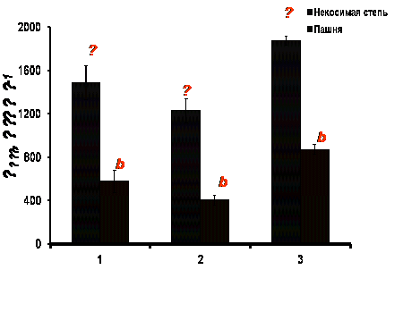 биомасса чернозема и дыхательная активность при сельскохозяйственном
