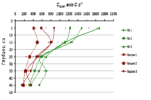Микробная биомасса чернозема и дыхательная активность при сельскохозяйственном воздействии