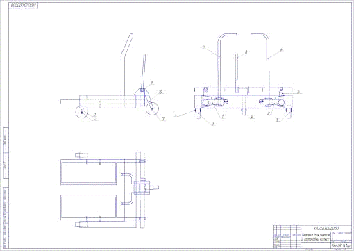 тележка для транспортировки колёс, колодок и других деталей автомобиля внутри