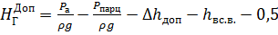 допустимой высоты всасывания