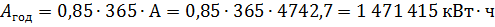 Годовой расход электроэнергии с учетом того, что